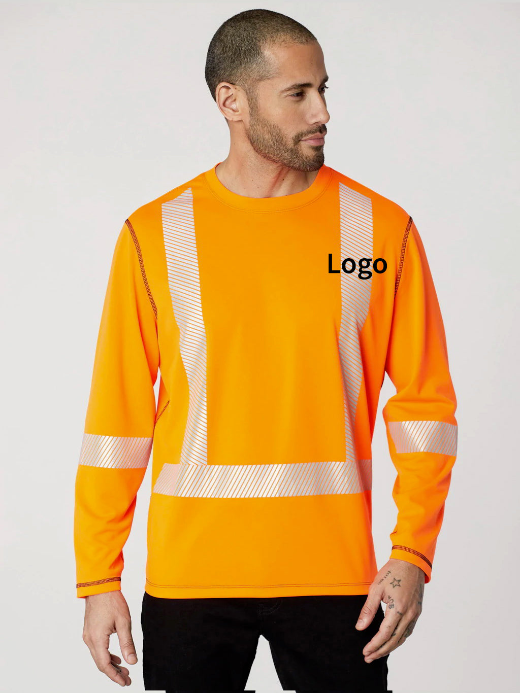 Positionnement logo t-shirt haute visibilité à manches longues col rond