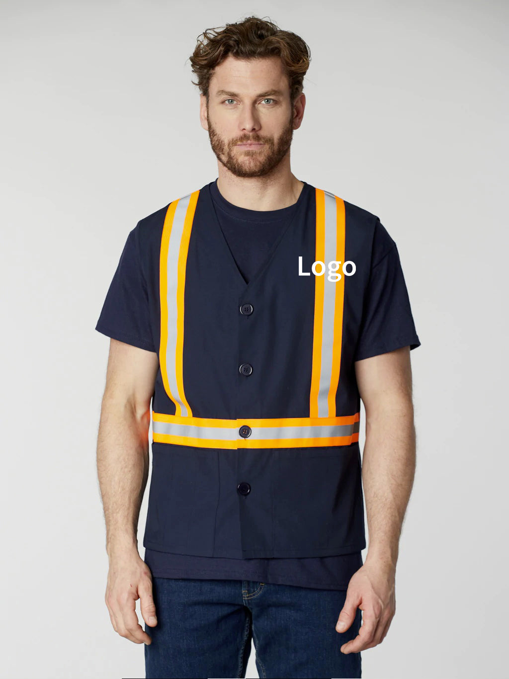 Positionnement logo gilet unisexe avec ruban haute visibilité